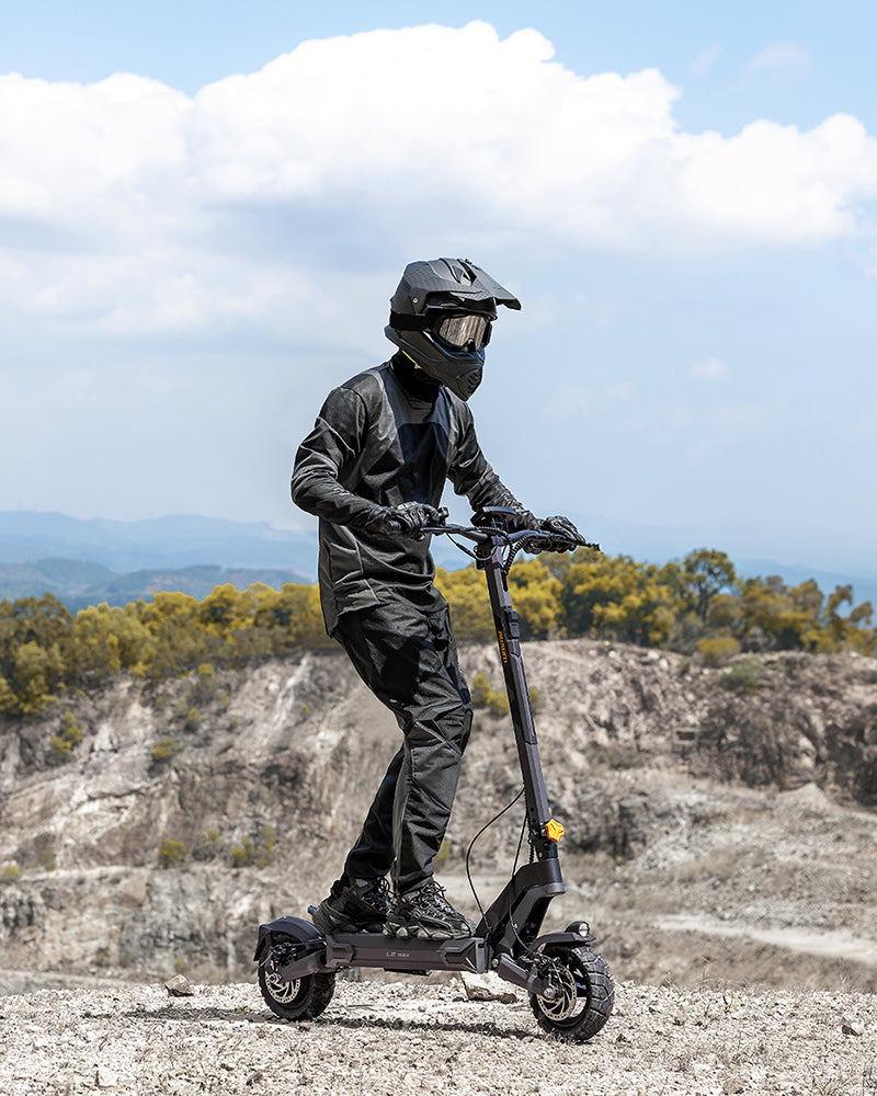 The dual ShocFree swingarm suspension, utilizing an aircraft landing gear system, optimally absorbs shocks, transforming bumpy trails into smooth pathways. This ensures SUV-level comfort whether you are commuting or exploring rugged off-road terrains.