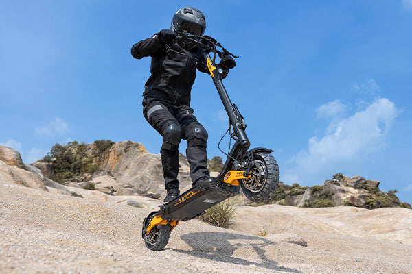 The rugged 10*3.0-inch puncture-resistant pneumatic tires deliver exceptional control and stability, allowing for smooth and steady rides across a multitude of terrains. Whether conquering steep mountain paths or gliding over shifting sands in dunes, Ausom's tires excel in overcoming obstacles and providing a secure riding experience.